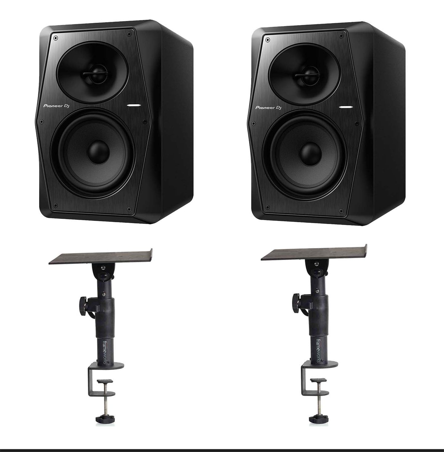 This DJ Package comes with 2 Pioneer VM-50 Studio Monitor and a pair of Gator Frameworks Desktop Clamp Mount.