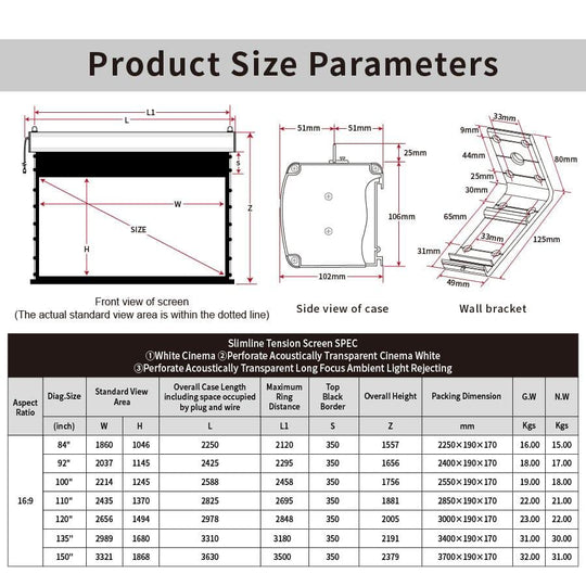 Slimline Tension Screen Acoustically Transparent Perforate White Cinema A More Modern Way To Open The Screen 【New choice projector screen for NORMAL THROW PROJECTOR】 Motorized projection screens are a versatile solution that allows the screen to...Sale price From $808.00Regular price $1,108.00Sale price From $808.00Regular price $1,108.00
