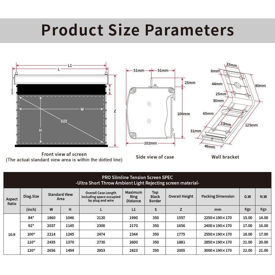 PRO Slimline Tension Screen Ultra Short Throw Ambient Light Rejecting screen