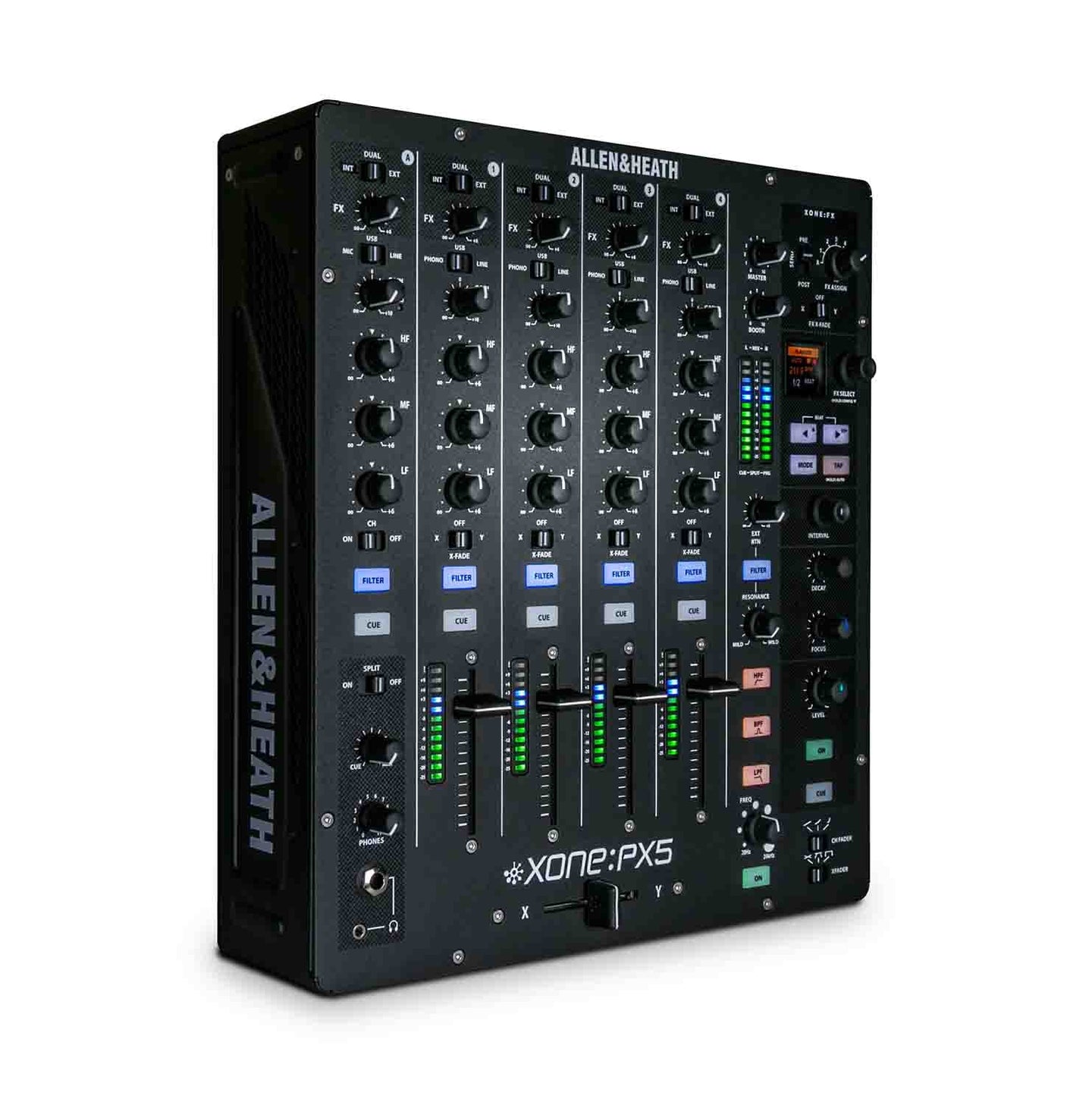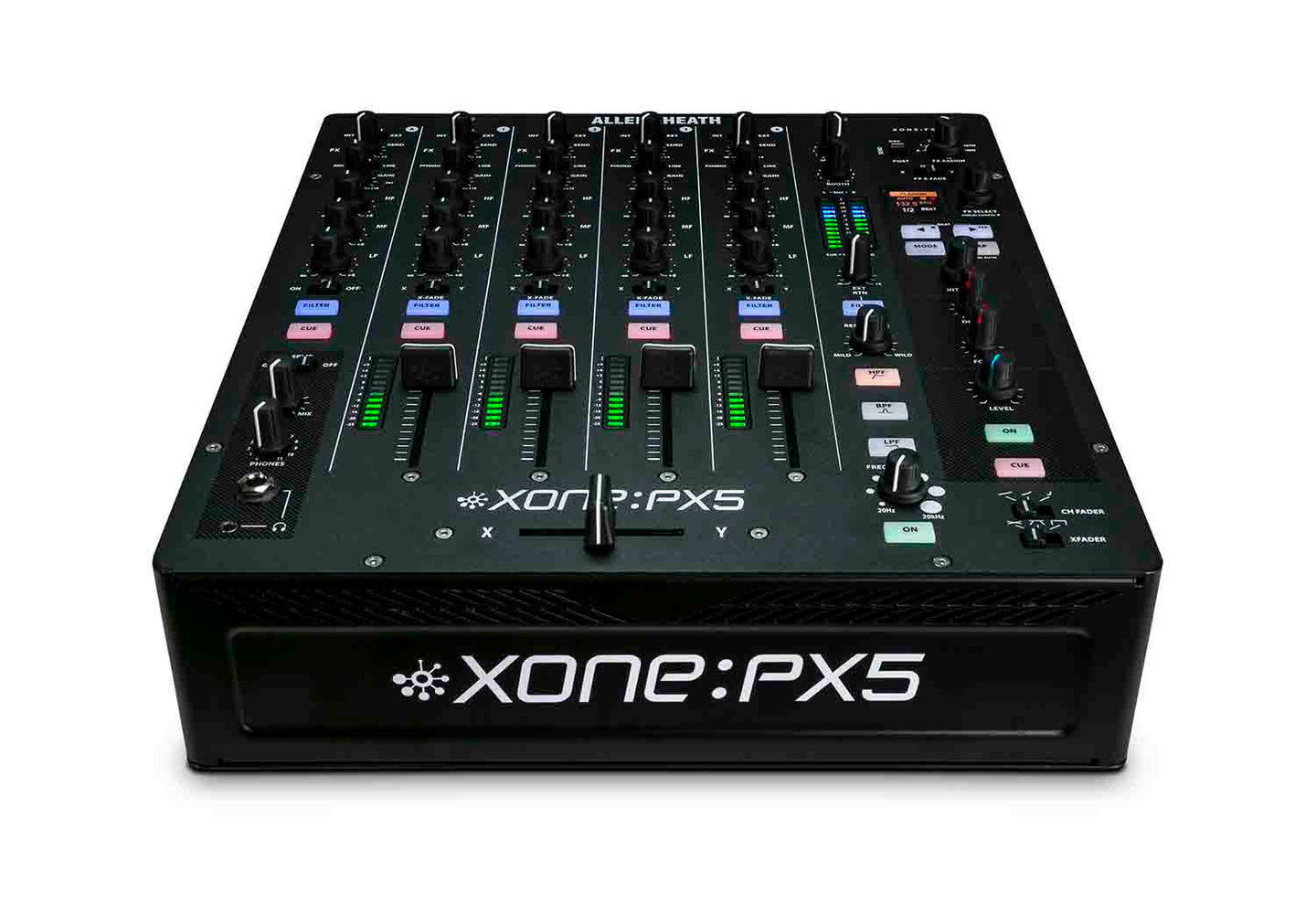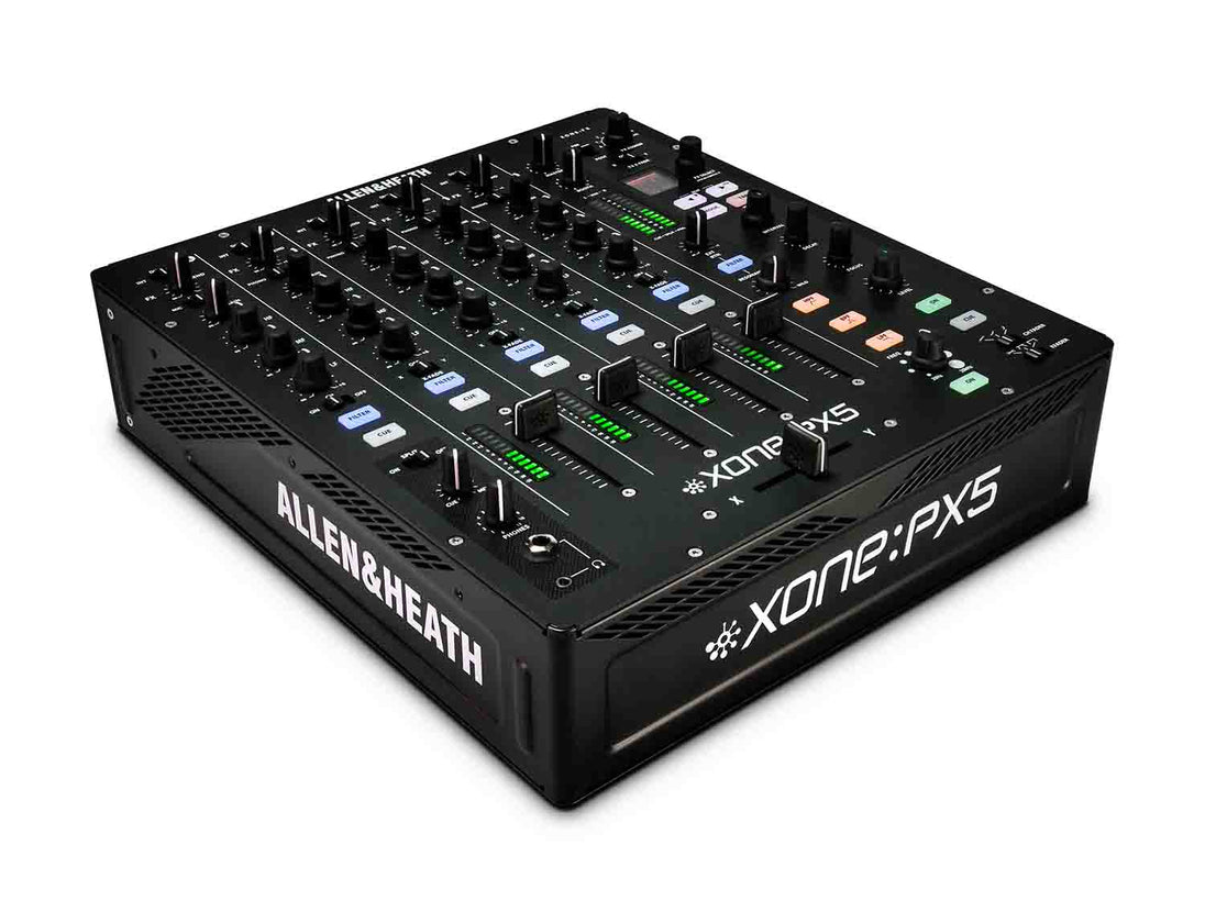 The Allen & Heath XONE:PX5 is a 4+1 DJ Performance Mixer. Combining the signature warm analogue Xone sound with class leading digital connectivity, Xone:PX5 breathes life and soul into electronic music performance. The built-in FX technology offers new levels of manipulation with our new Xone:Xcite FX suite of performance-focused delays, reverbs, modulators, flangers and distorters which are all assignable through simple hands-on control for fine-tuning the FX and expressing the DJ’s inner creativity. Xone:PX5 is a 4+1 channel mixer, equipped with the legendary Xone filter, 3 band EQ on all channels and an intuitive layout. The versatile Send/Return feature allowing for the connection of external FX hardware with both Send/Return and Master Insert mode connections (Line or Hi-Z) equips Xone:PX5 for numerous enhanced setup scenarios.
