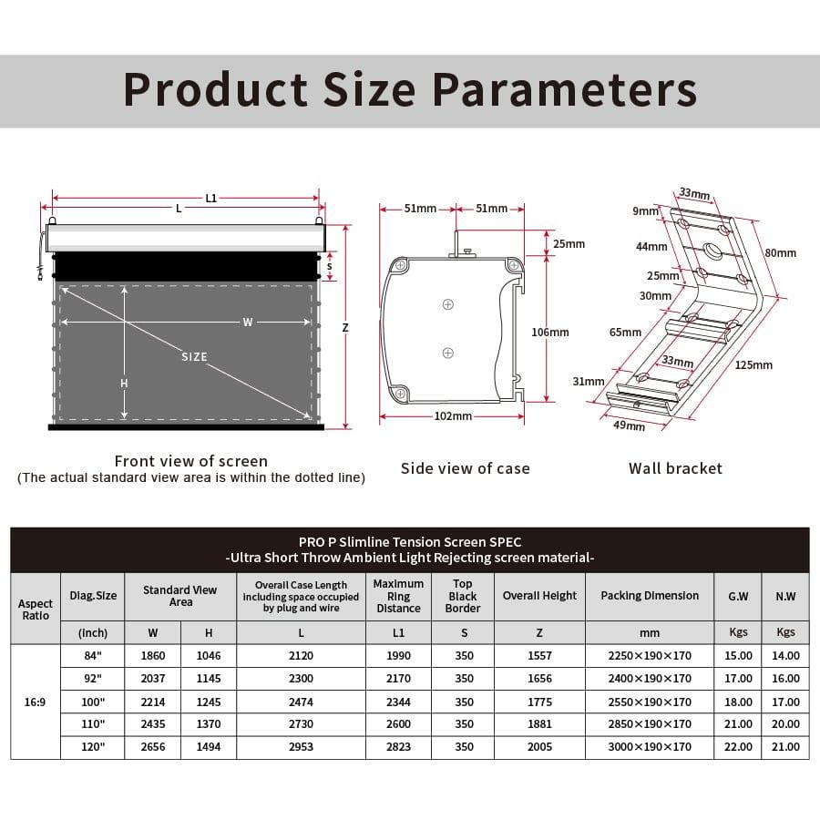 PRO P Slimline Tension Screen Ultra Short Throw Ambient Light Rejecting screen Create 3D surround sound